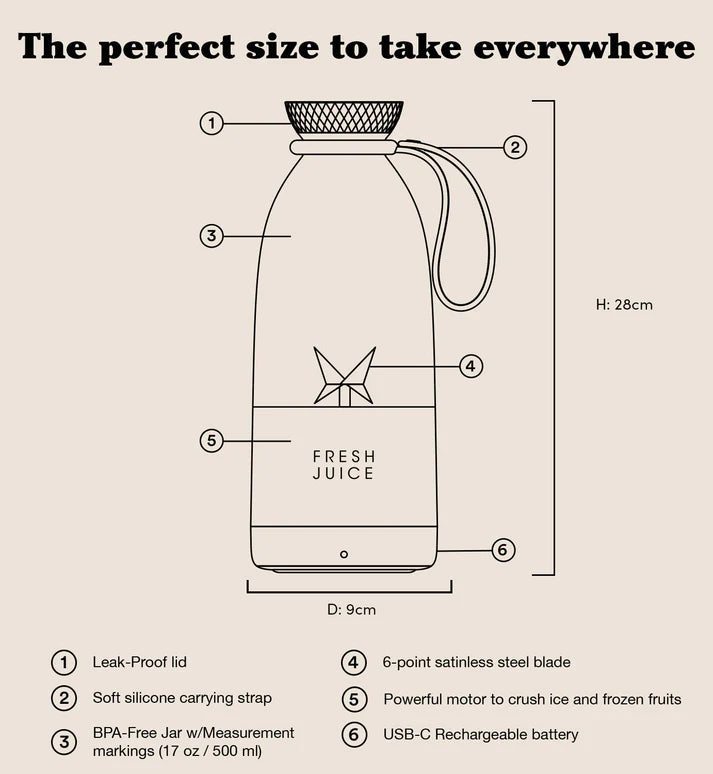 Permite fazer smoothies em qualquer lugar, é leve o suficiente para levar para o trabalho, para o ginásio ou para qualquer outro lugar que vá diariamente. O seu design compacto permite que caiba facilmente na sua mochila ou bolsa.